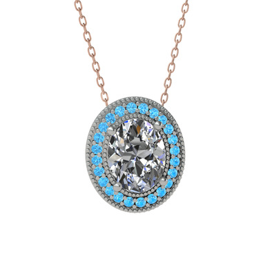 Beyaz zirkon ve akuamarin 14 ayar beyaz altın kolye (40 cm rose altın rolo zincir)