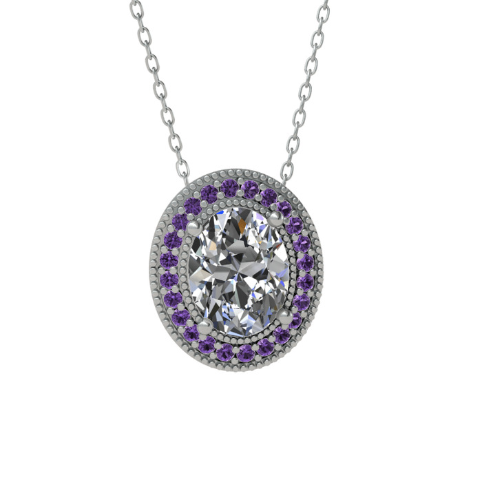 Beyaz zirkon ve ametist 14 ayar beyaz altın kolye (40 cm beyaz altın rolo zincir)