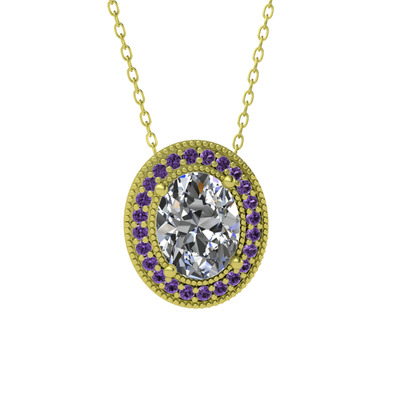 Beyaz zirkon ve ametist 8 ayar altın kolye (40 cm altın rolo zincir)
