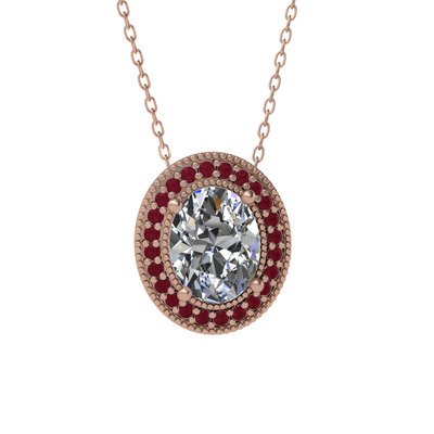 Beyaz zirkon ve kök yakut 14 ayar rose altın kolye (40 cm rose altın rolo zincir)