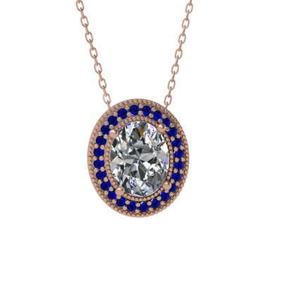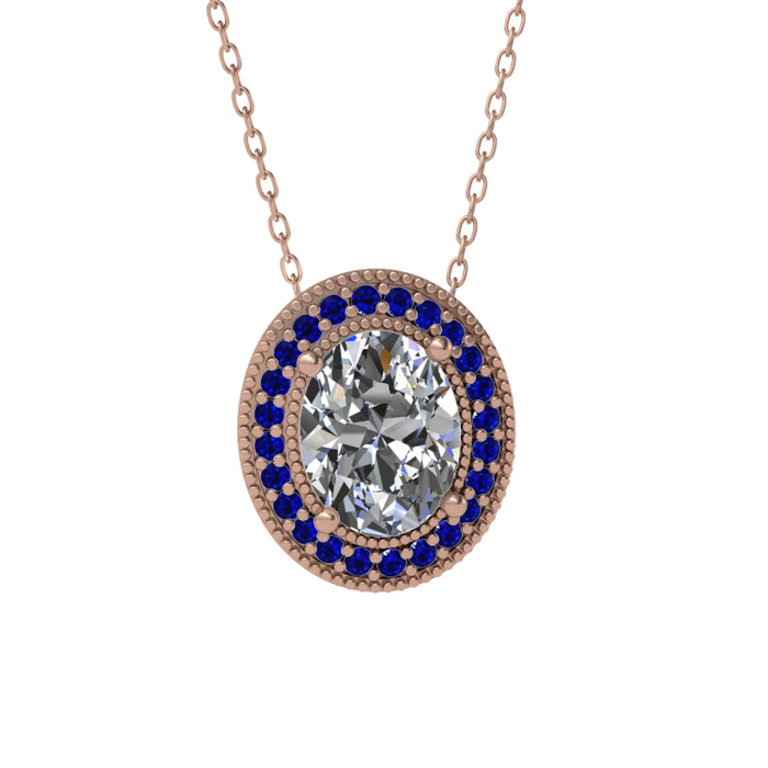 Beyaz zirkon ve lab safir 14 ayar rose altın kolye (40 cm rose altın rolo zincir)