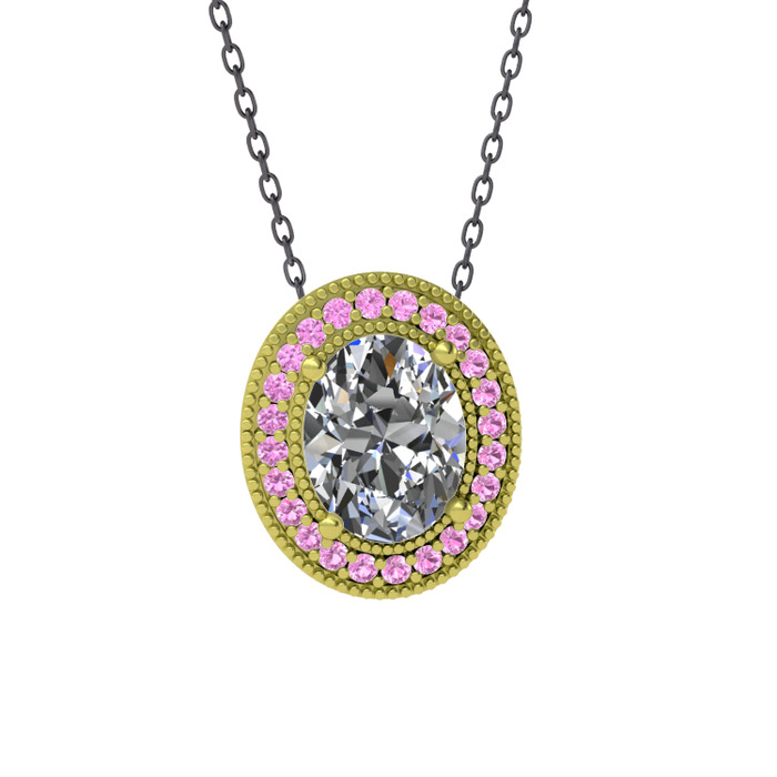 Beyaz zirkon ve pembe kuvars 14 ayar altın kolye (40 cm gümüş rolo zincir)