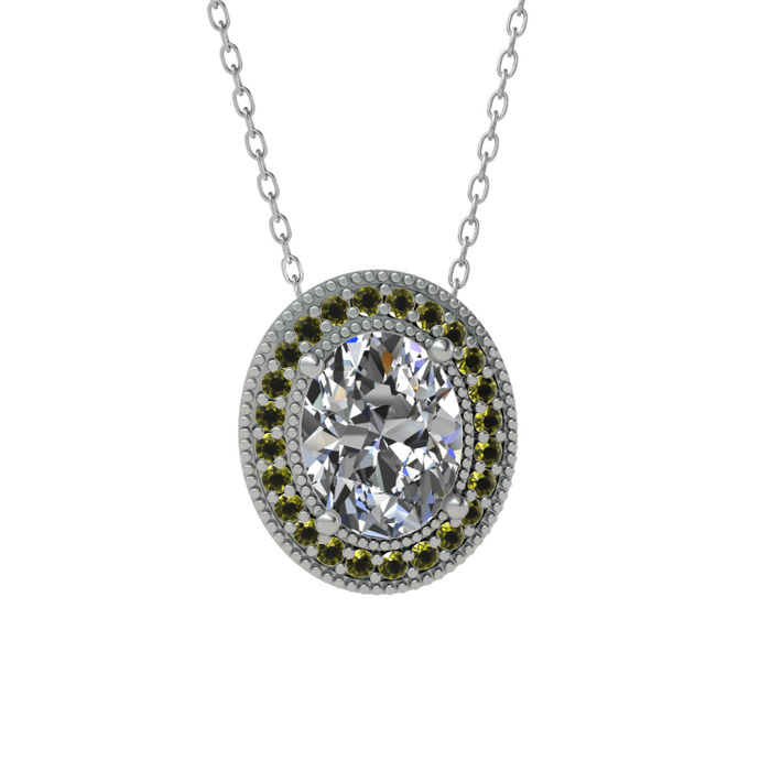 Beyaz zirkon ve peridot 8 ayar beyaz altın kolye (40 cm beyaz altın rolo zincir)