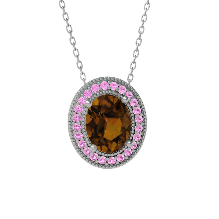 Dumanlı kuvars ve pembe kuvars 8 ayar beyaz altın kolye (40 cm beyaz altın rolo zincir)