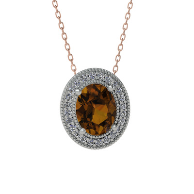Dumanlı kuvars ve pırlanta 18 ayar beyaz altın kolye (0.264 karat, 40 cm rose altın rolo zincir)