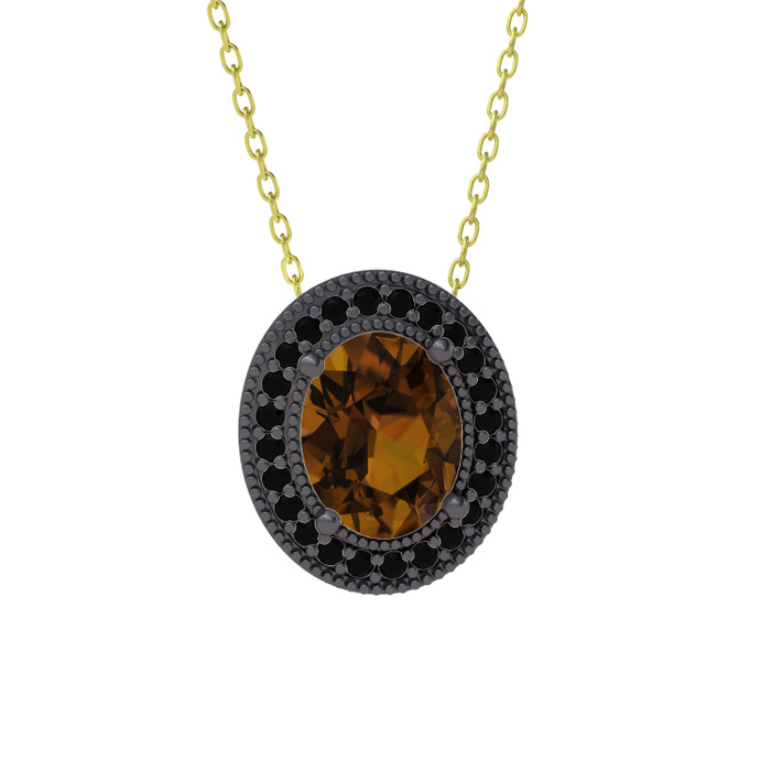 Dumanlı kuvars ve siyah zirkon 925 ayar siyah rodyum kaplama gümüş kolye (40 cm altın rolo zincir)