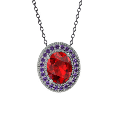 Garnet ve ametist 14 ayar beyaz altın kolye (40 cm gümüş rolo zincir)
