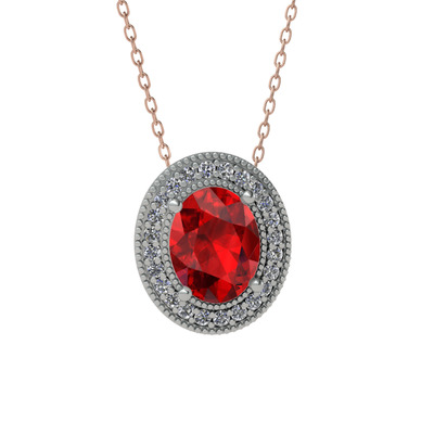 Garnet ve beyaz zirkon 14 ayar beyaz altın kolye (40 cm rose altın rolo zincir)