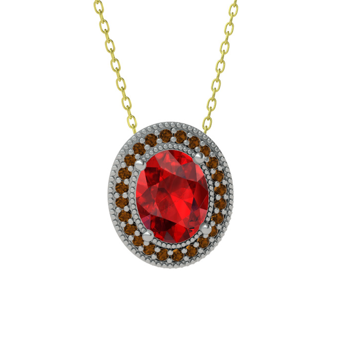 Garnet ve dumanlı kuvars 18 ayar beyaz altın kolye (40 cm altın rolo zincir)