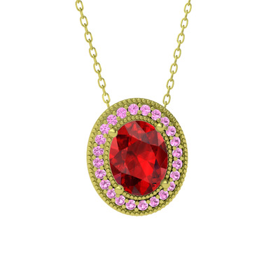 Garnet ve pembe kuvars 18 ayar altın kolye (40 cm altın rolo zincir)