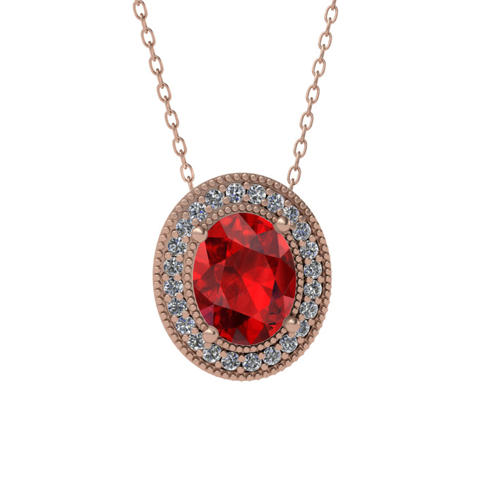 Garnet ve pırlanta 14 ayar rose altın kolye (0.264 karat, 40 cm gümüş rolo zincir)