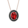 Garnet ve siyah zirkon 14 ayar beyaz altın kolye (40 cm gümüş rolo zincir)