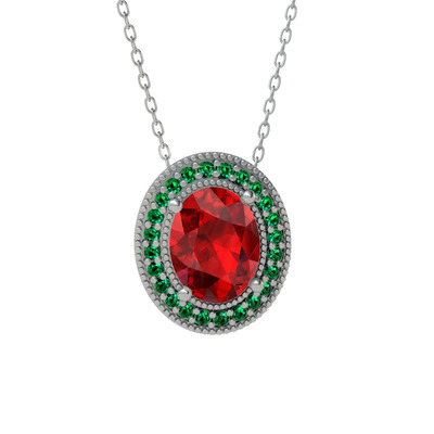 Garnet ve yeşil kuvars 18 ayar beyaz altın kolye (40 cm beyaz altın rolo zincir)