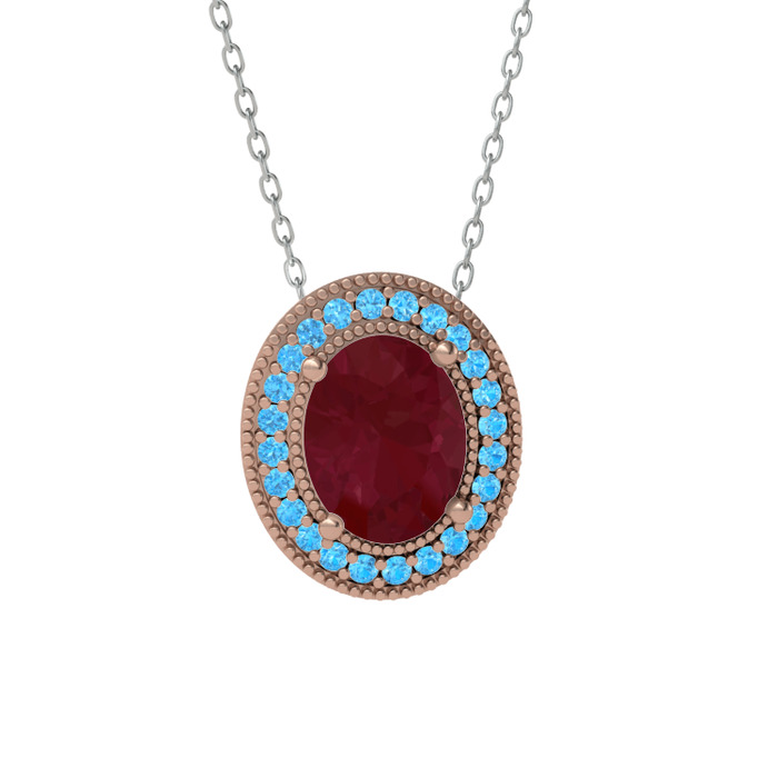 Kök yakut ve akuamarin 14 ayar rose altın kolye (40 cm beyaz altın rolo zincir)