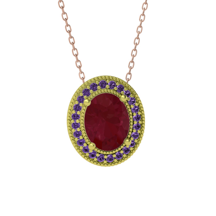 Kök yakut ve ametist 14 ayar altın kolye (40 cm rose altın rolo zincir)
