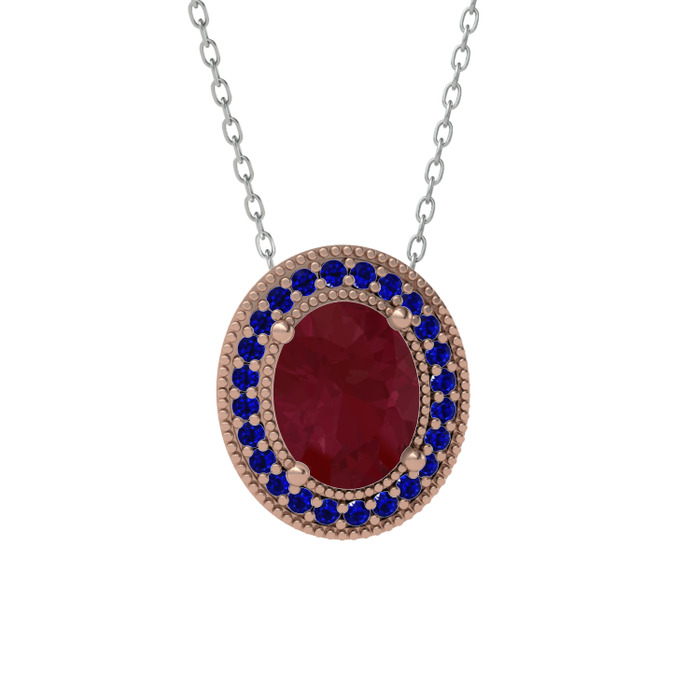 Kök yakut ve lab safir 14 ayar rose altın kolye (40 cm beyaz altın rolo zincir)