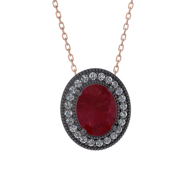 Kök yakut ve pırlanta 925 ayar siyah rodyum kaplama gümüş kolye (0.264 karat, 40 cm gümüş rolo zincir)