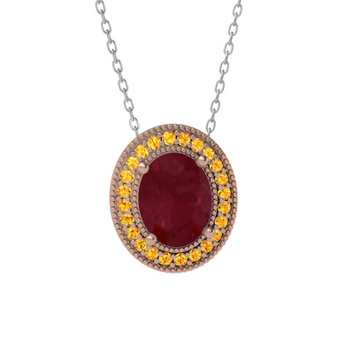Kök yakut ve sitrin 18 ayar rose altın kolye (40 cm gümüş rolo zincir)