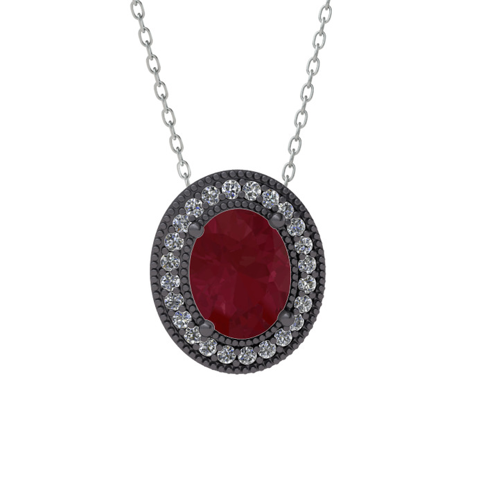 Kök yakut ve swarovski 925 ayar siyah rodyum kaplama gümüş kolye (40 cm beyaz altın rolo zincir)