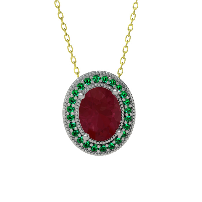 Kök yakut ve yeşil kuvars 8 ayar beyaz altın kolye (40 cm altın rolo zincir)