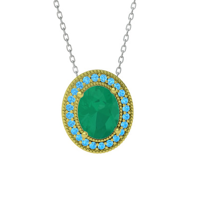 Kök zümrüt ve akuamarin 14 ayar altın kolye (40 cm beyaz altın rolo zincir)
