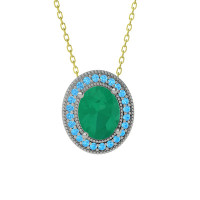 Kök zümrüt ve akuamarin 14 ayar beyaz altın kolye (40 cm altın rolo zincir)