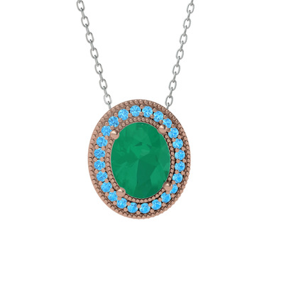 Kök zümrüt ve akuamarin 14 ayar rose altın kolye (40 cm beyaz altın rolo zincir)