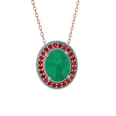 Kök zümrüt ve garnet 14 ayar beyaz altın kolye (40 cm rose altın rolo zincir)