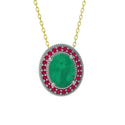 Kök zümrüt ve rodolit garnet 18 ayar beyaz altın kolye (40 cm gümüş rolo zincir)