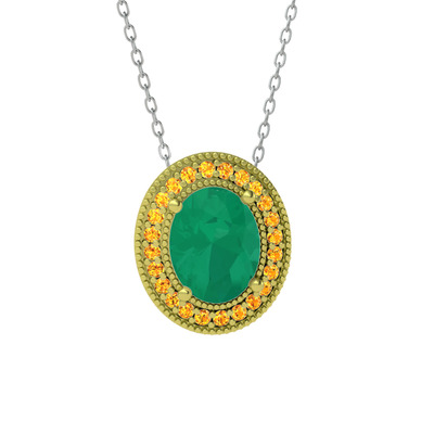 Kök zümrüt ve sitrin 14 ayar altın kolye (40 cm beyaz altın rolo zincir)