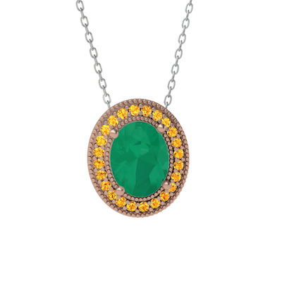 Kök zümrüt ve sitrin 14 ayar rose altın kolye (40 cm beyaz altın rolo zincir)