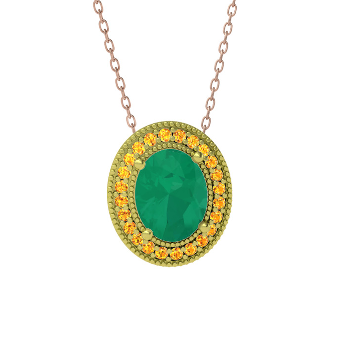 Kök zümrüt ve sitrin 8 ayar altın kolye (40 cm rose altın rolo zincir)