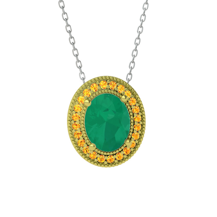 Kök zümrüt ve sitrin 925 ayar altın kaplama gümüş kolye (40 cm beyaz altın rolo zincir)
