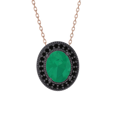 Kök zümrüt ve siyah zirkon 925 ayar siyah rodyum kaplama gümüş kolye (40 cm rose altın rolo zincir)