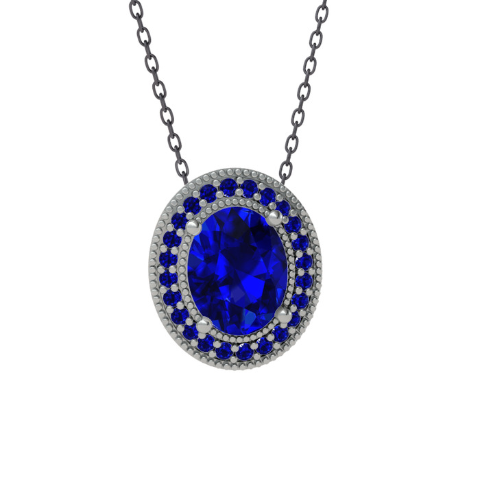 Lab safir 8 ayar beyaz altın kolye (40 cm gümüş rolo zincir)