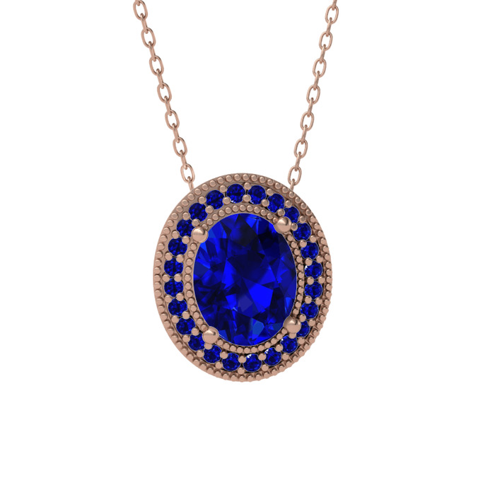 Lab safir 8 ayar rose altın kolye (40 cm rose altın rolo zincir)