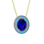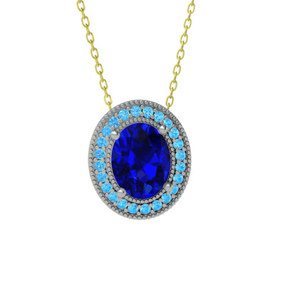 Lab safir ve akuamarin 18 ayar beyaz altın kolye (40 cm altın rolo zincir)