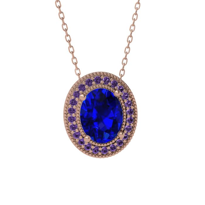 Lab safir ve ametist 14 ayar rose altın kolye (40 cm rose altın rolo zincir)