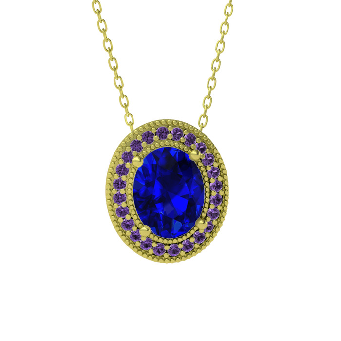 Lab safir ve ametist 8 ayar altın kolye (40 cm altın rolo zincir)