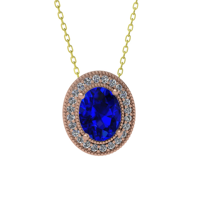 Lab safir ve beyaz zirkon 14 ayar rose altın kolye (40 cm altın rolo zincir)