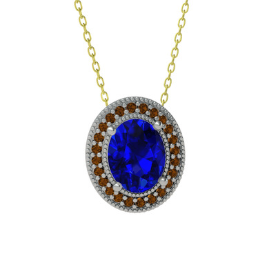 Lab safir ve dumanlı kuvars 18 ayar beyaz altın kolye (40 cm altın rolo zincir)