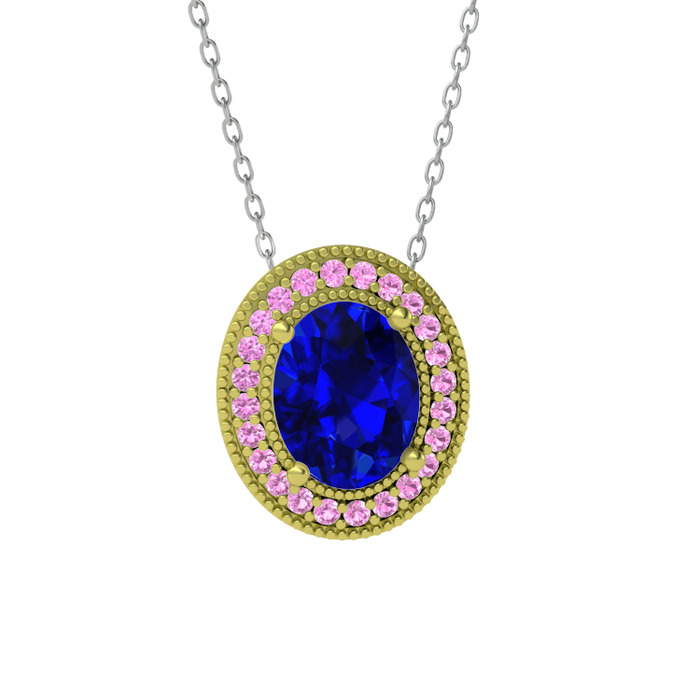 Lab safir ve pembe kuvars 18 ayar altın kolye (40 cm beyaz altın rolo zincir)
