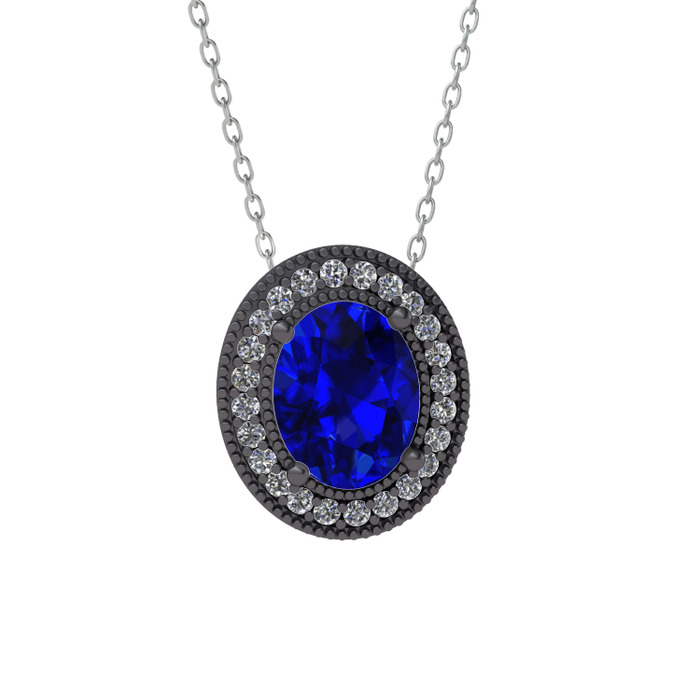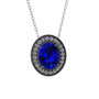 Lab safir ve pırlanta 925 ayar siyah rodyum kaplama gümüş kolye (0.264 karat, 40 cm gümüş rolo zincir)