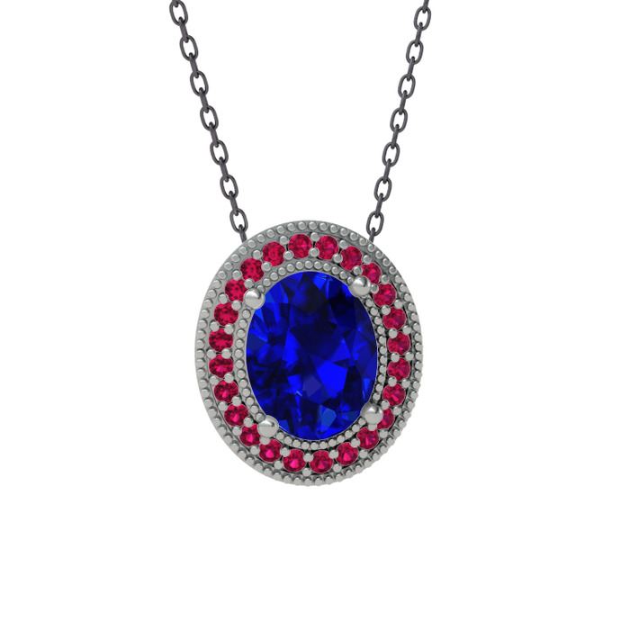 Lab safir ve rodolit garnet 925 ayar gümüş kolye (40 cm gümüş rolo zincir)