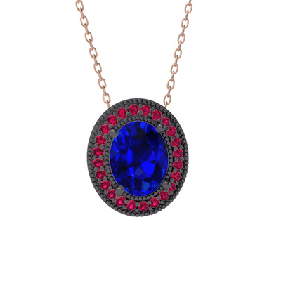 Lab safir ve rodolit garnet 925 ayar siyah rodyum kaplama gümüş kolye (40 cm rose altın rolo zincir)