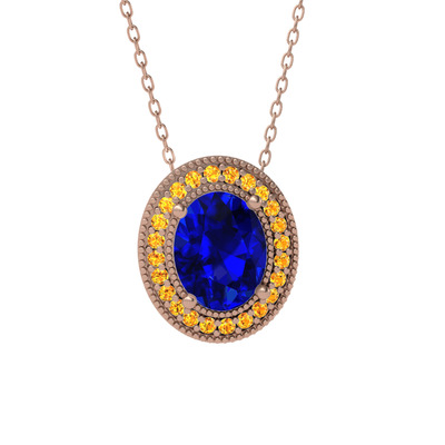 Lab safir ve sitrin 14 ayar rose altın kolye (40 cm gümüş rolo zincir)
