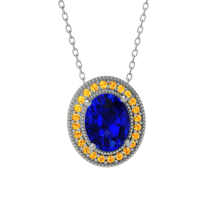 Lab safir ve sitrin 8 ayar beyaz altın kolye (40 cm gümüş rolo zincir)