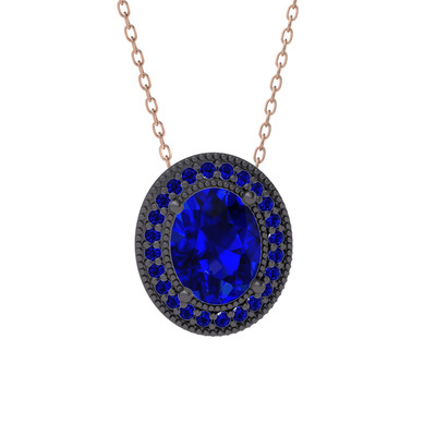 Lab safir 925 ayar siyah rodyum kaplama gümüş kolye (40 cm gümüş rolo zincir)