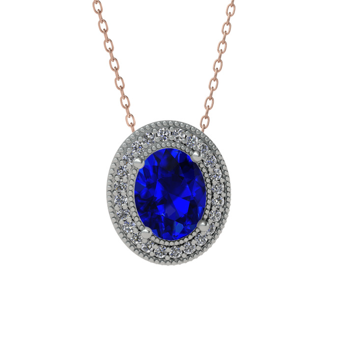 Lab safir ve swarovski 925 ayar gümüş kolye (40 cm rose altın rolo zincir)