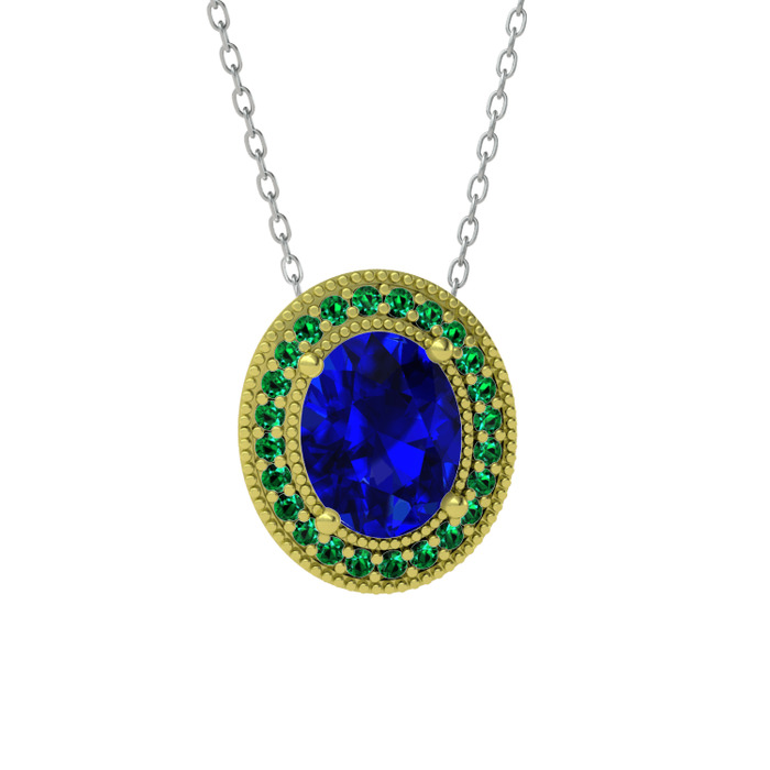 Lab safir ve yeşil kuvars 18 ayar altın kolye (40 cm beyaz altın rolo zincir)